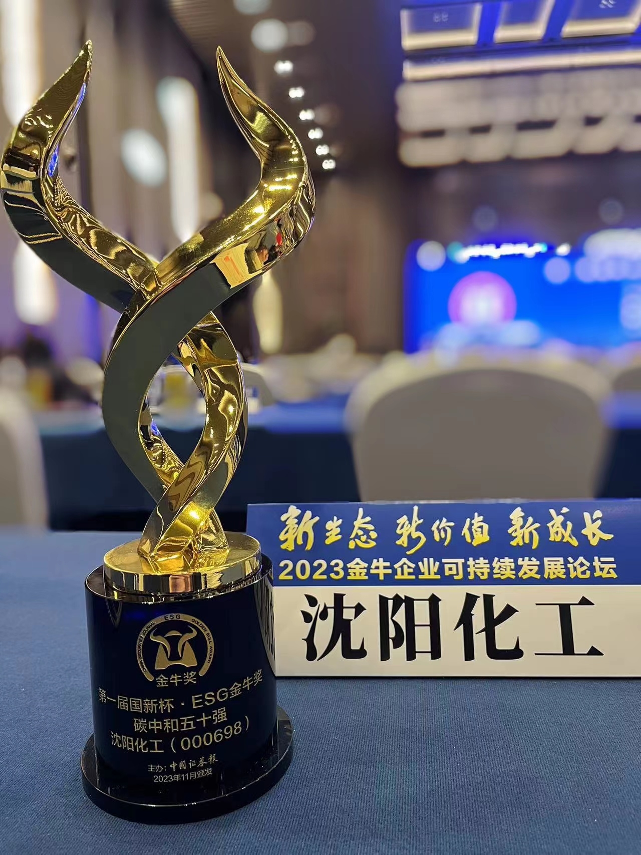 該獎(jiǎng)項(xiàng)評(píng)選重點(diǎn)在與碳中和主題相關(guān)的傳統(tǒng)能源行業(yè)中選取“國(guó)新杯·ESG金牛獎(jiǎng)”評(píng)選方案“環(huán)境范疇-氣候變化-溫室氣體排放”議題中相關(guān)定性、定量指標(biāo)表現(xiàn)靠前的50家上市公司。沈陽(yáng)化工股份有限公司作為央企控股上市公司,一直以來致力于推動(dòng)綠色低碳高質(zhì)量發(fā)展,秉承“最大程度降低環(huán)境影響,最佳利用自然資源,創(chuàng)造綠色產(chǎn)品,助力全球碳減排和碳中和”的政策,榮獲該項(xiàng)殊榮。
